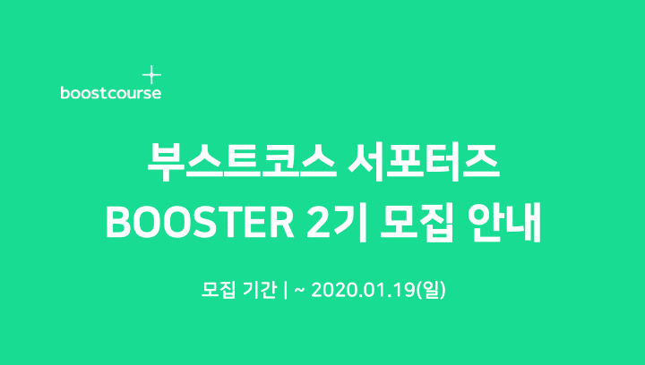 부스트코스 서포터즈를 신청하면서 이 포스팅을 하게 되었습니다. 관심있으시다면 https://m.post.naver.com/viewer/postView.nhn?volumeNo=27274312&memberNo=34635212 이 링크를 따라 신청하시면 됩니다.!