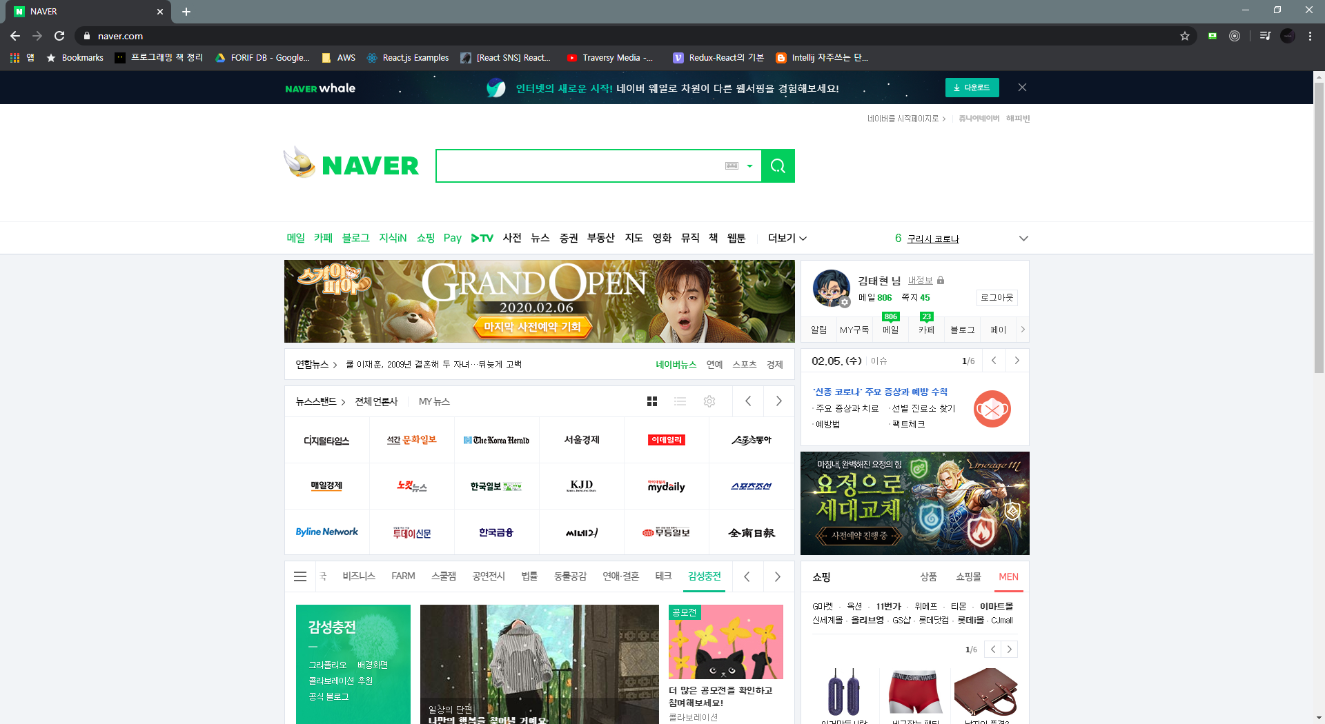 웹 프론트엔드는, 쉽게 말하자면 '사용자에게 보여지는 부분' 이라고 할 수 있습니다. 예를 들어, 구글의 검색결과 화면 혹은 네이버 포털의 첫화면, 네이버 뉴스의 기사 화면 등등이 있죠. 아래와 같은 화면을 웹 프론트엔드라고 할 수 있습니다.
