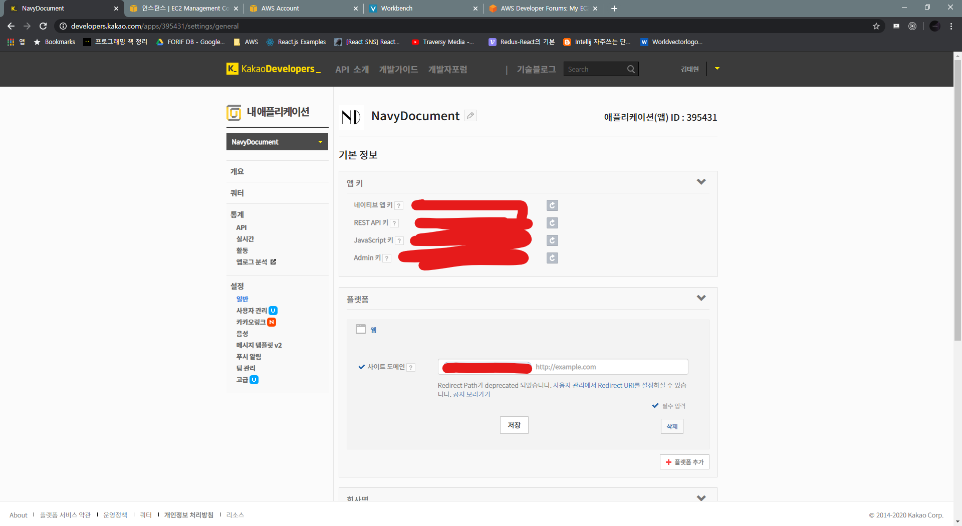 여기서 '내 애플리케이션' 하단의, 방금 전 만들었던 어플리케이션을 클릭합니다. 그러면 아래와 같은 페이지가 나타납니다.