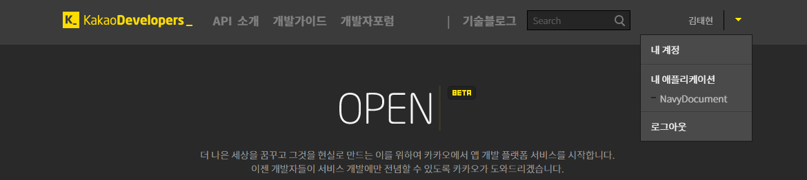 기입한 카카오 계정으로 개발자 등록 과정이 끝나게 됩니다.
