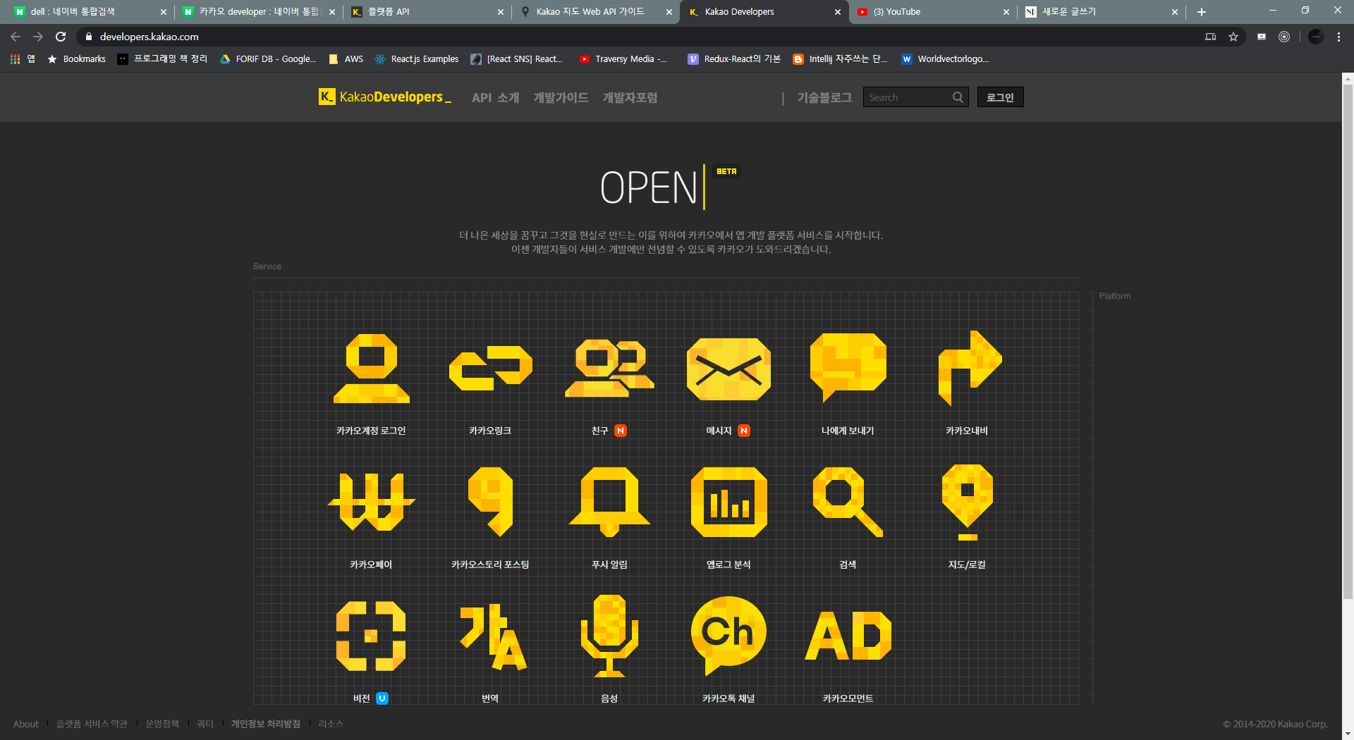 1. 카카오 개발자사이트 (https://developers.kakao.com) 접속