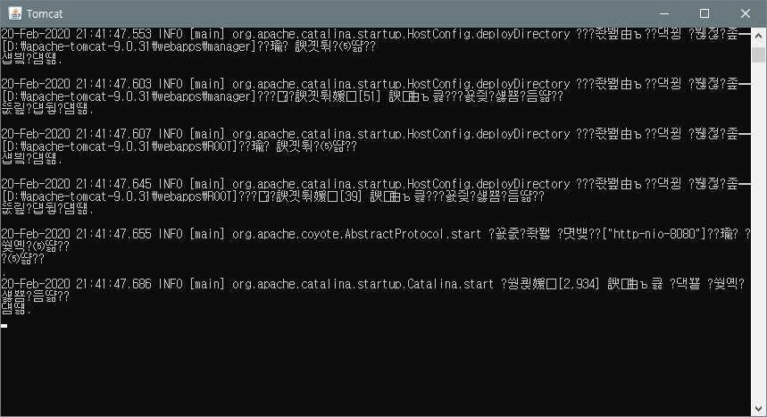 Tomcat을 종료하고 싶다면 방금 새로 나타난 Tomcat cmd 창을 닫으면 됩니다.