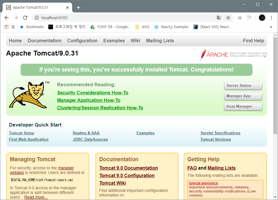 이렇게 Tomcat이 정상적으로 실행된 것을 확인할 수 있습니다.