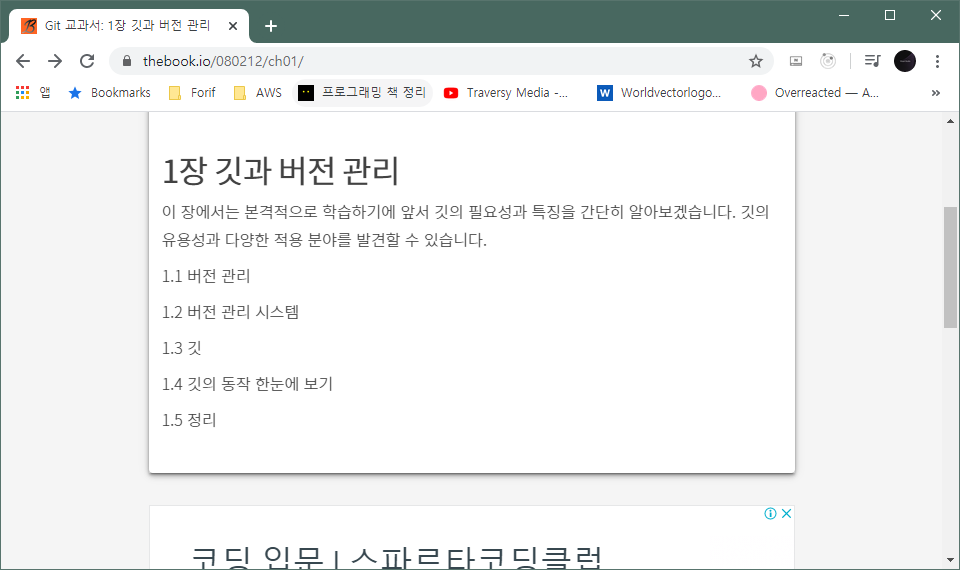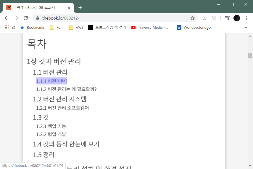 URL에 책의 id만 입력하여 접속하면, 이렇게 '목차' 부분이 로드 된다. 목차에는 아래와 같이