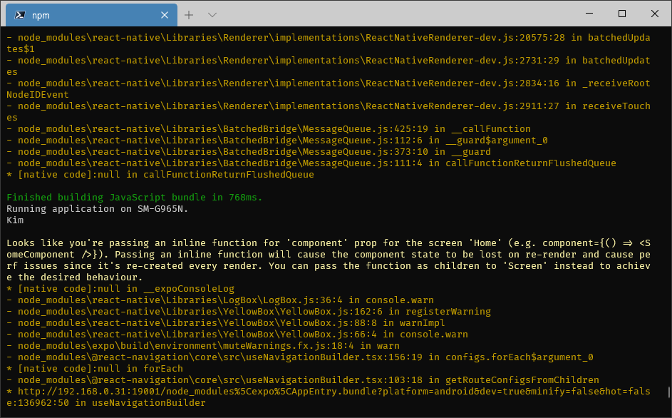 하지만, expo에서는 warning이 발생한다.