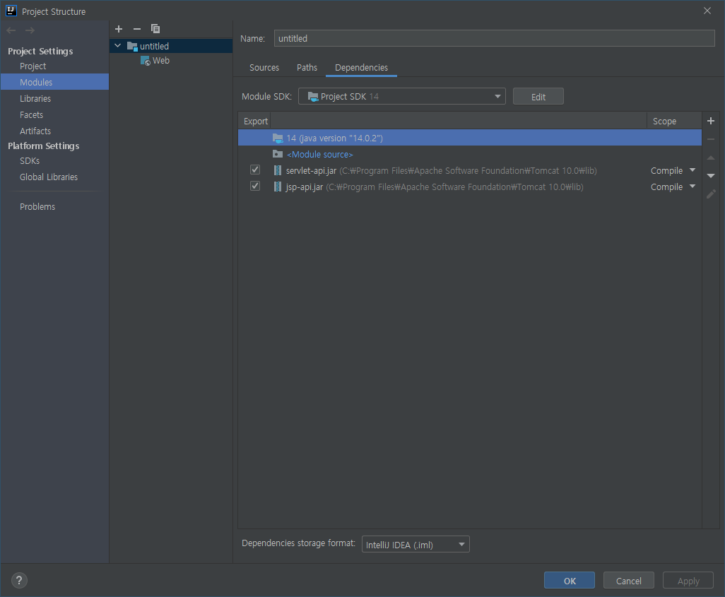 intellij 로 java 웹을 공부하는데, 아직 초보라 maven, gradle 이런건 모르고 그냥 생 프로젝트를 만들어서 공부하는 중이다. 서블릿을 공부하는데, 서블릿 모듈들을 추가하기 위해서는 아래와 같이 하면 된다.