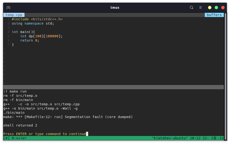 2차원 배열을 선언해서 사용하려는데 100*100000의 2차원 배열을 선언하면 segmentation fault가 발생한다. 그럴때에는 stack 영역이 아닌 data 영역에서 선언해주어야 한다.
